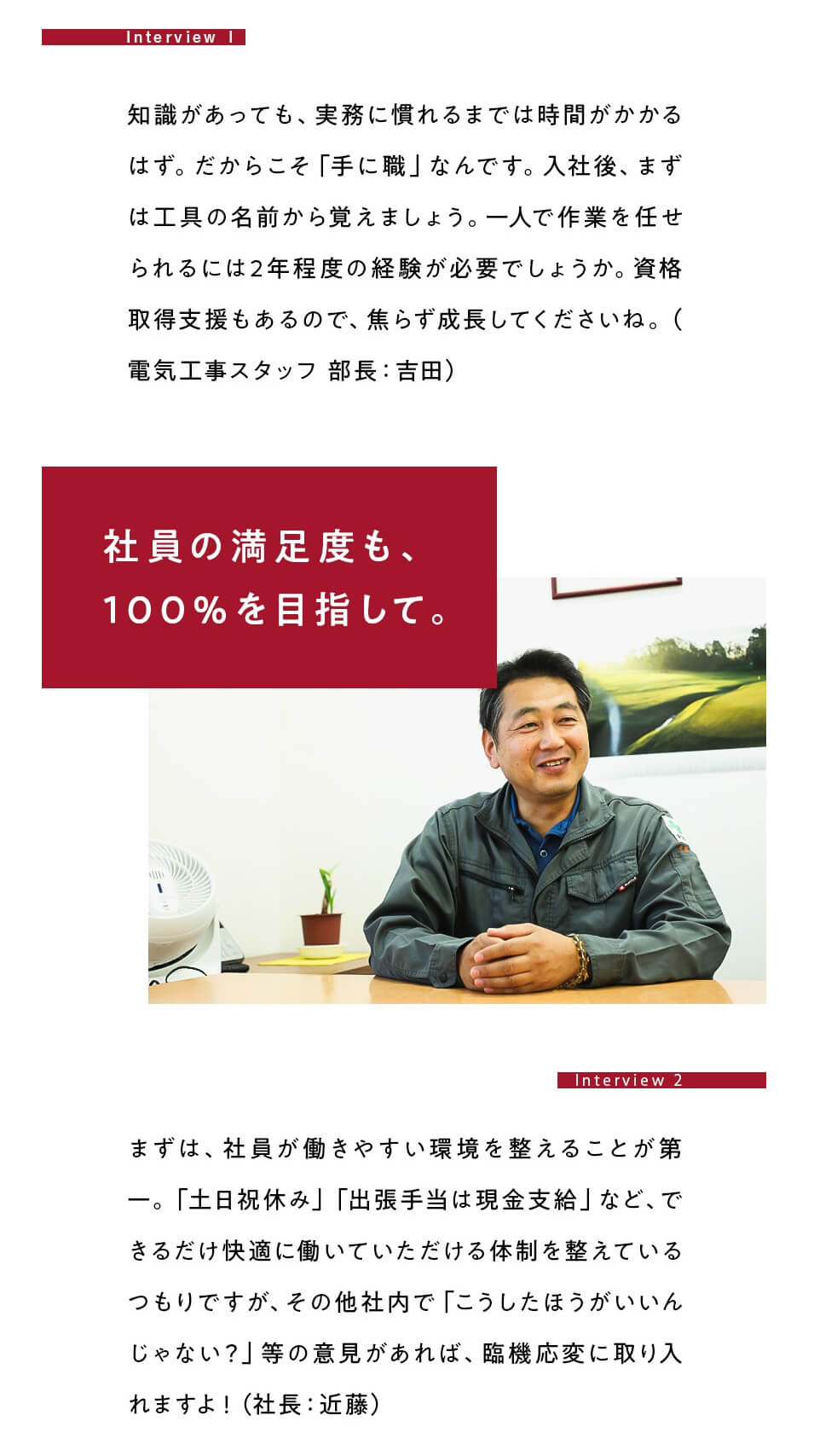 社長に直接お話しを伺うことで、その本気度が伝わってきました。実際に地域への想いを感謝祭として催したり、チームワークを向上させるため、社員旅行(費用の8割を会社負担)は高級宿で思い切りリフレッシュしたり。